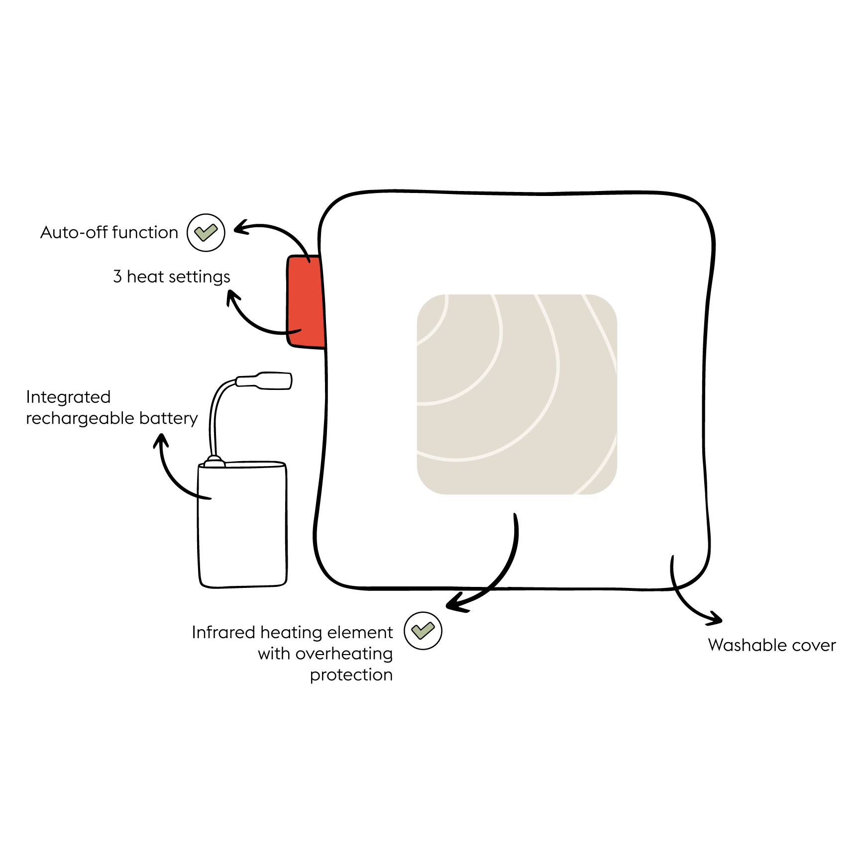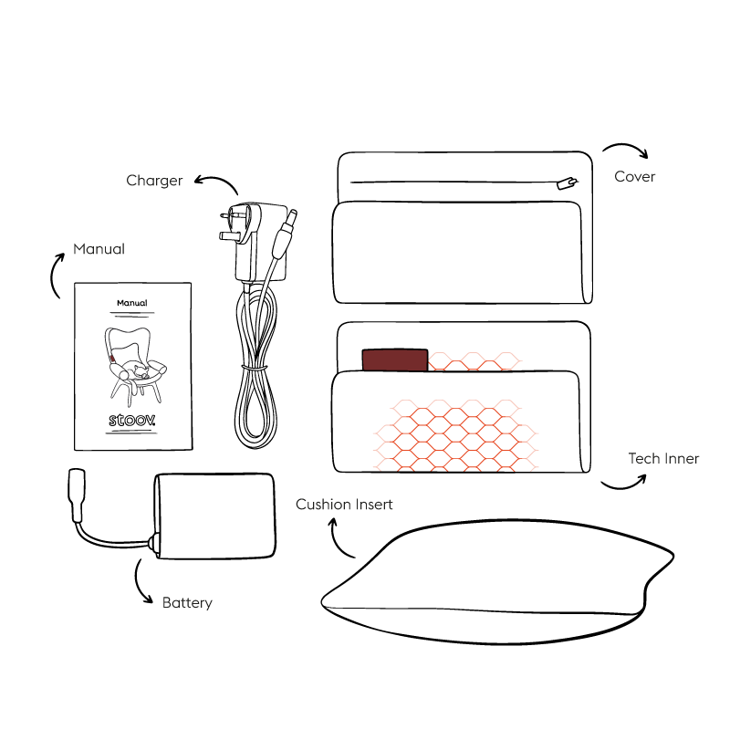 The One is a rechargeable heated seat cushion with 3 heat settings. Turn on your Stoov via the smart label and choose your personal heat setting. Thanks to its powerful Li-Ion battery, you will enjoy hours of cosy warmth for up to 5 hours.