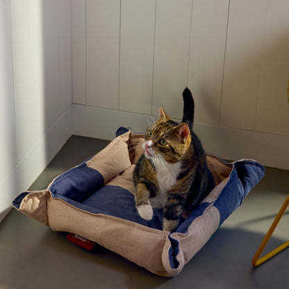 Nook³ is a cordless heated bed designed for cats and small dogs. Your pet can snuggle up in a cosy corner. Unfasten the sides and your pet can stretch out. Our infrared heating technology has three settings up to 58 °C and the rechargeable battery provides up to 10 hours of warmth.