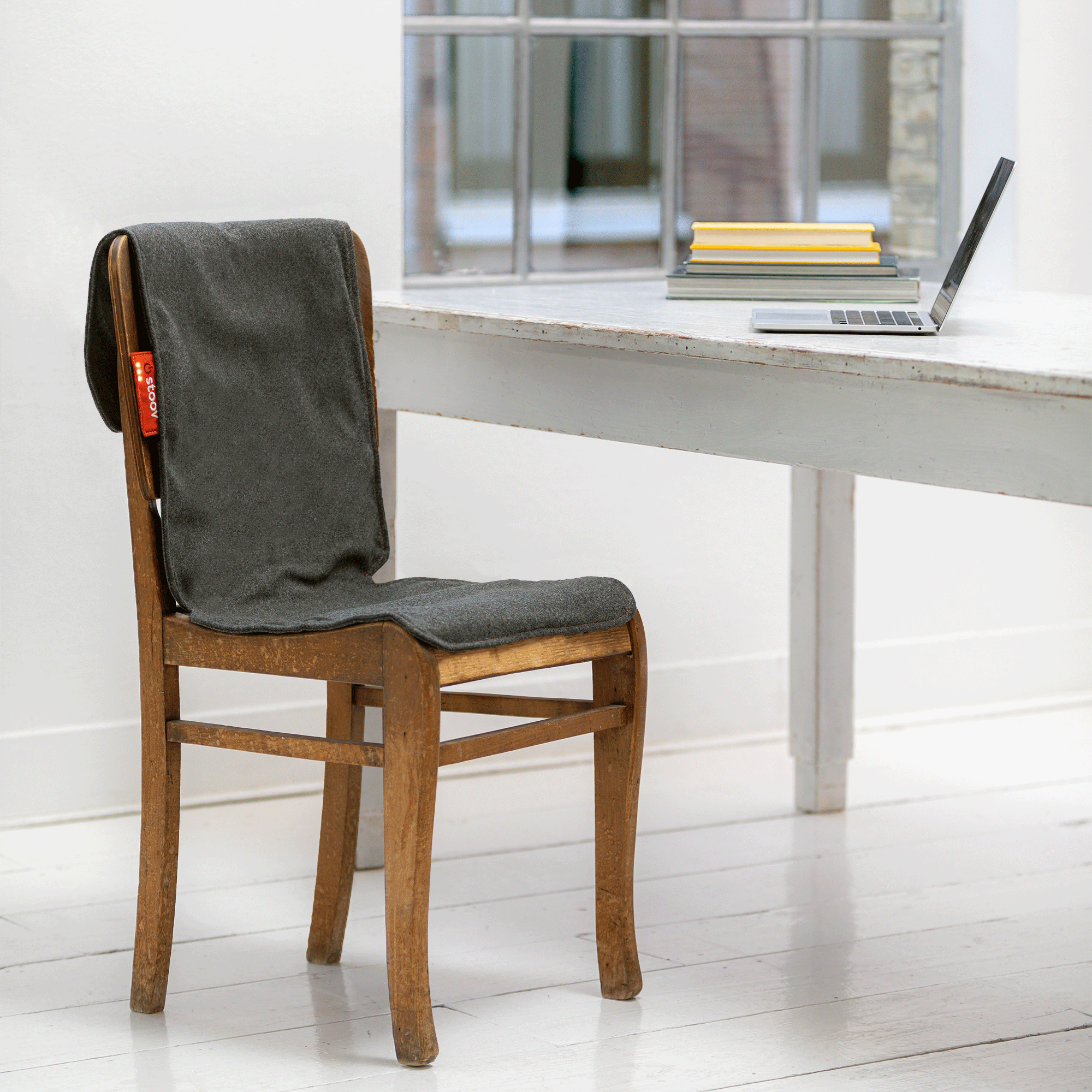 De Big Hug¹ is een oplaadbare stoelverwarmer met drie warmtestanden. Zet je Stoov aan via het smart label en kies jouw persoonlijke warmtestand. Dankzij de krachtige Li-Ion batterij geniet je urenlang van behaaglijke warmte, tot wel 6 uur lang.